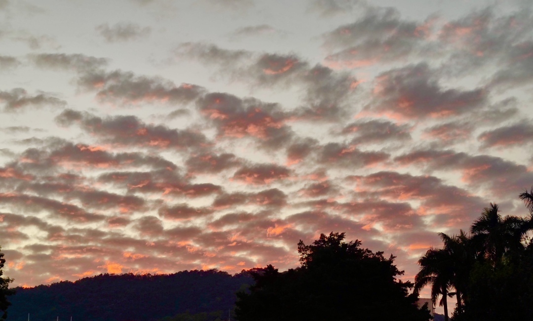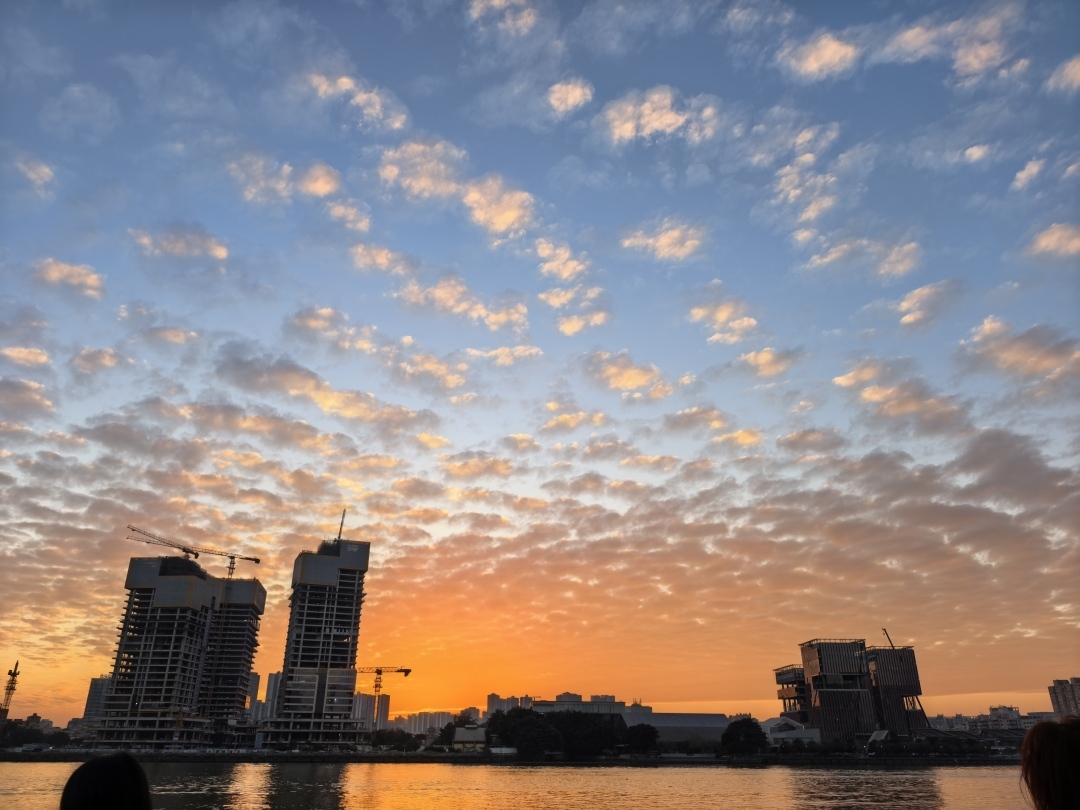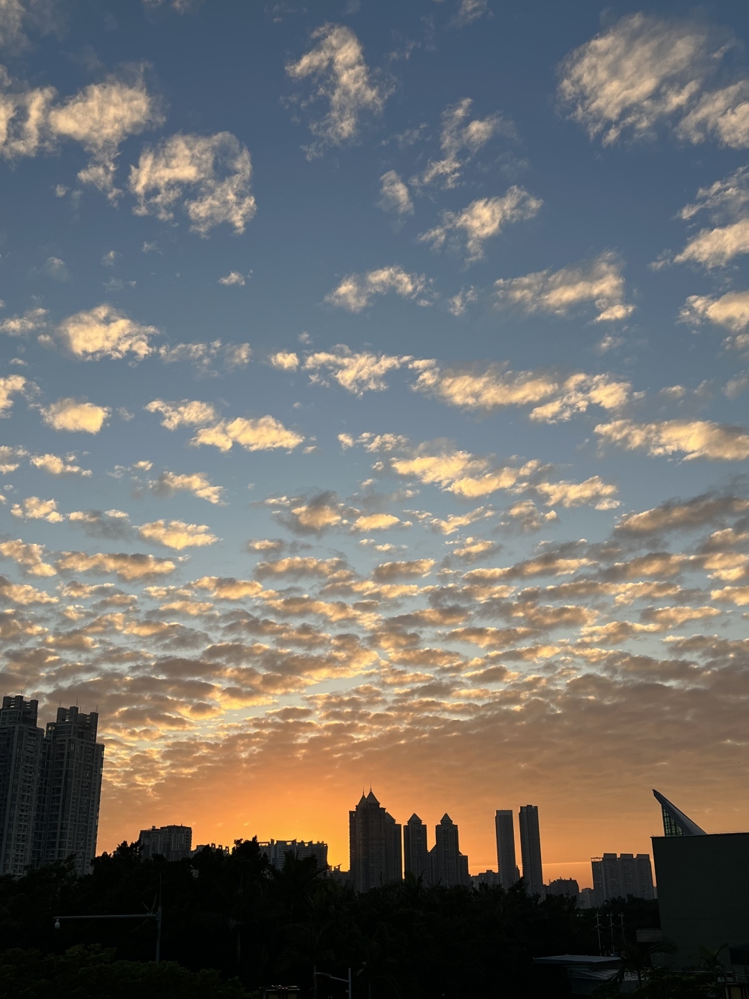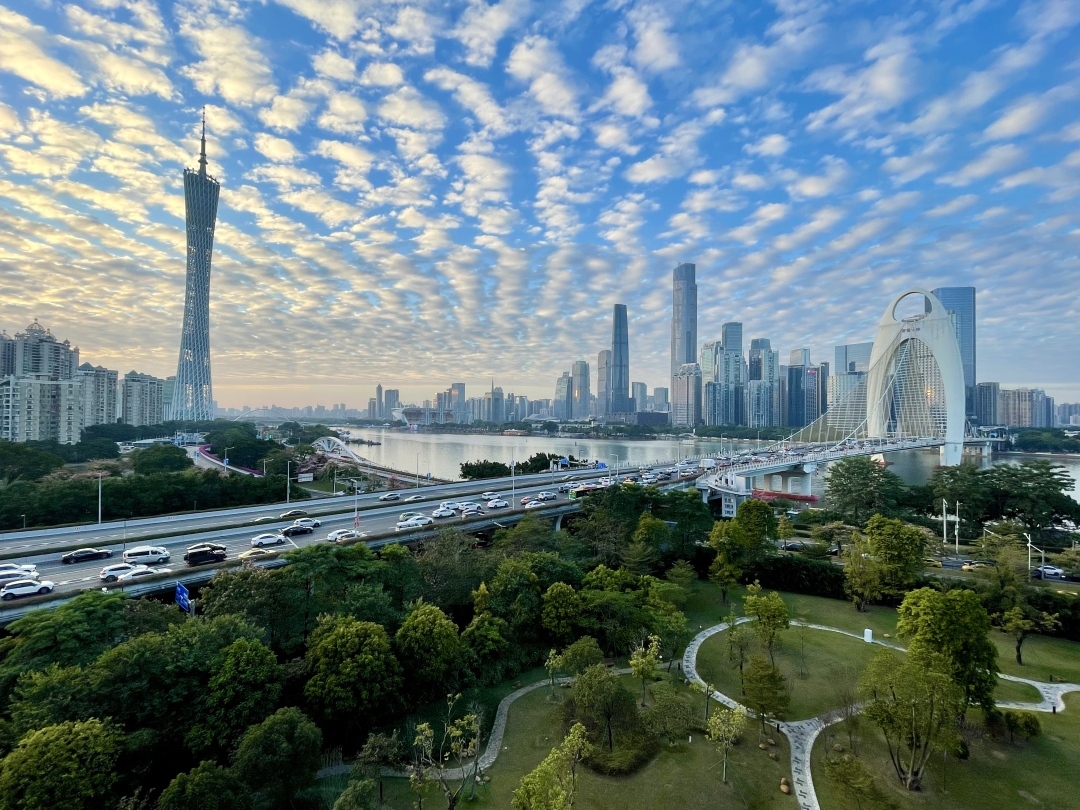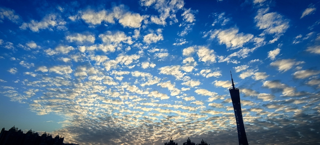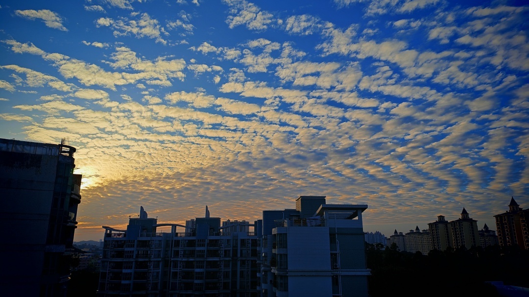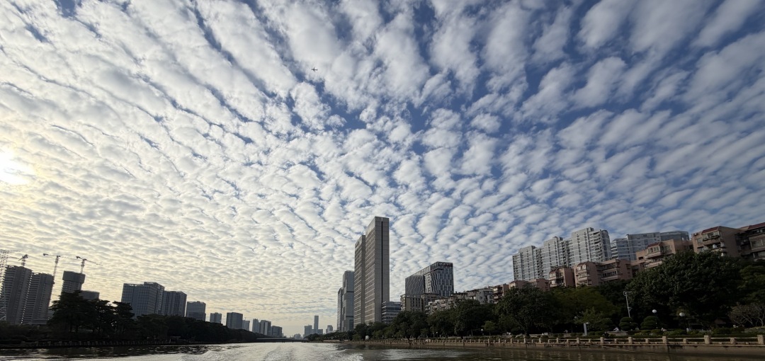 据了解,“鱼鳞云”是气象学上透光高积云的俗称,它形成的原因主要是受到冷空气影响,非常通透干净,没有什么云;而在冷空气之上,基本上受到西南到偏西暖湿气流控制,暖湿气流沿着冷空气爬升,爬到一定高度后冷却,就会形成这样一片一片的层状云。