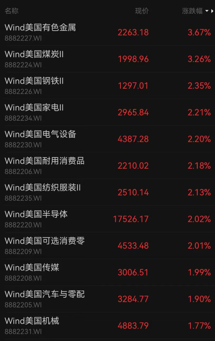 截至发稿,道指涨超1%,涨超600个点;纳指涨1.9%,标普500指数涨1.53%。市场上超4000只个股上涨。